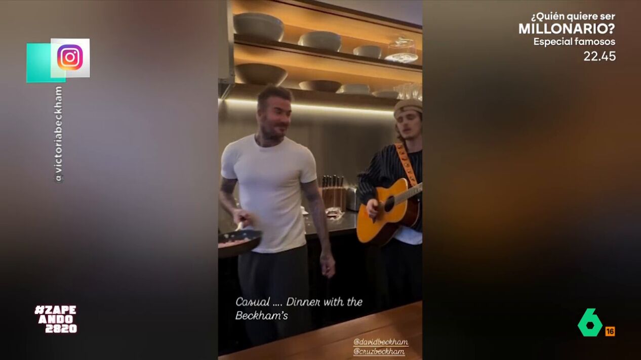 Si alguna vez te has preguntado cómo son las cenas en casa de los Beckham, Victoria Beckham te da la respuesta. La diseñadora ha publicado un vídeo en sus redes sociales en el que se puede ver a su marido, David Beckham, preparando la cena mientras su hijo mayor, Brooklyn, ameniza el momento tocando la guitarra.