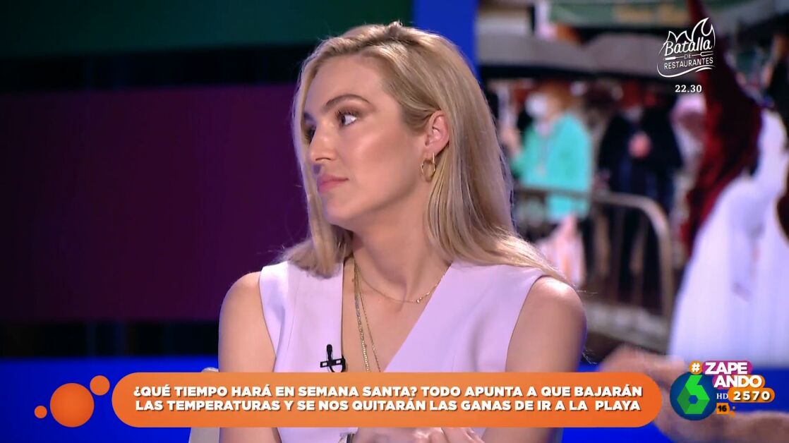 La periodista pide al meteorólogo de laSexta que dé un avance del tiempo que tendremos esta Semana Santa, pero al escuchar su predicción admite estar "fastidiada". Puedes ver este momento en el vídeo de Zapeando.