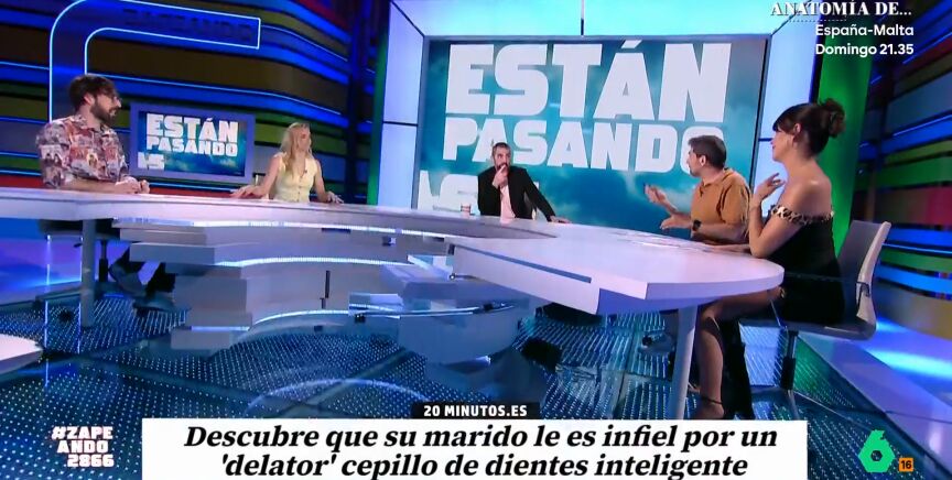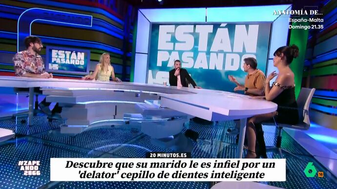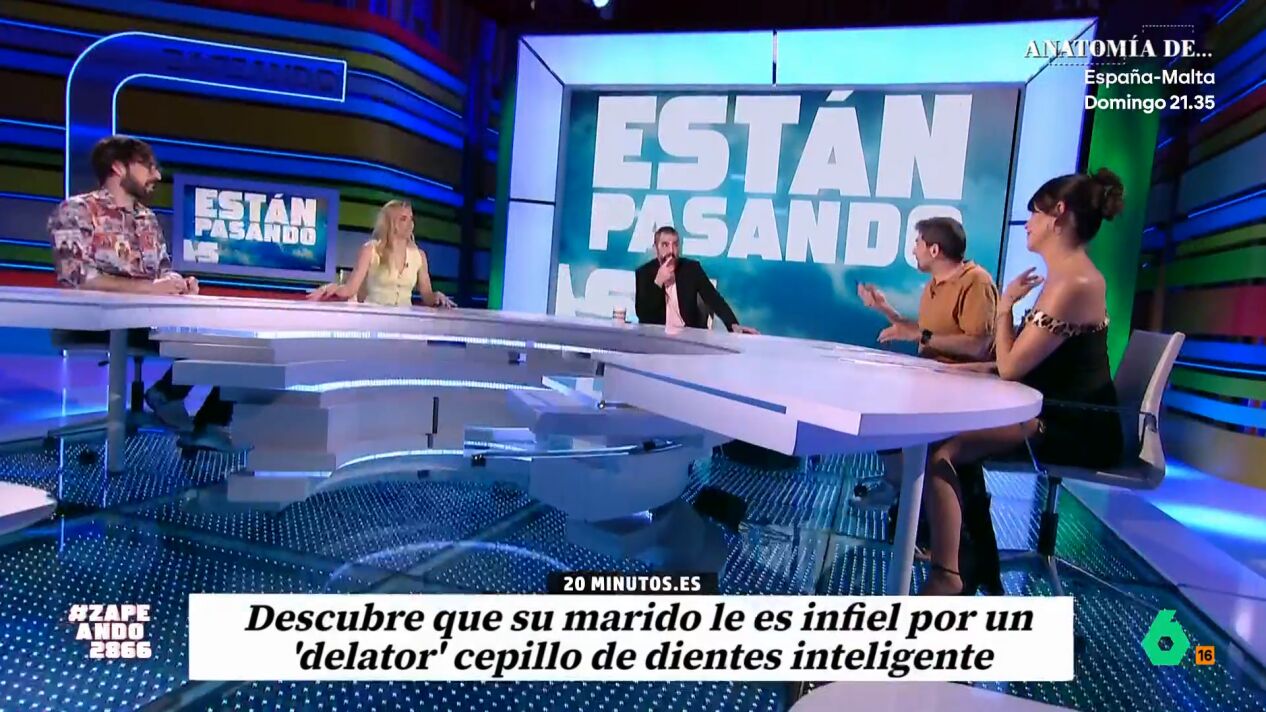 "Tú pensabas que era inteligente de verdad, que la mujer encendió el cepillo y le dijo: 'Te están poniendo los cuernos'", comenta Nacho García. "Inteligente y chivato el cepillo", añade Dani, y se pregunta: "¿Ese hombre solo se cepilla los dientes cuando va a echar un pistacho?".