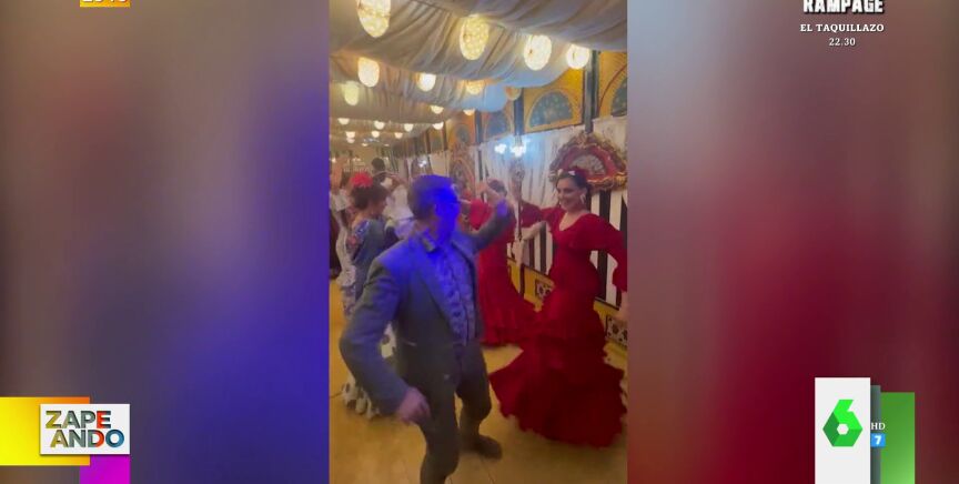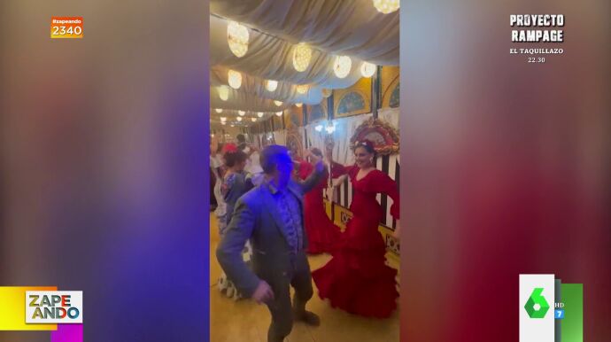 "Estas imágenes pueden herir sensibilidades", advierte Quique Peinado a los compañeros de Zapeando, a los que muestra el baile de Boticaria García en la Feria de Abril de Sevilla que provoca las risas en plató.