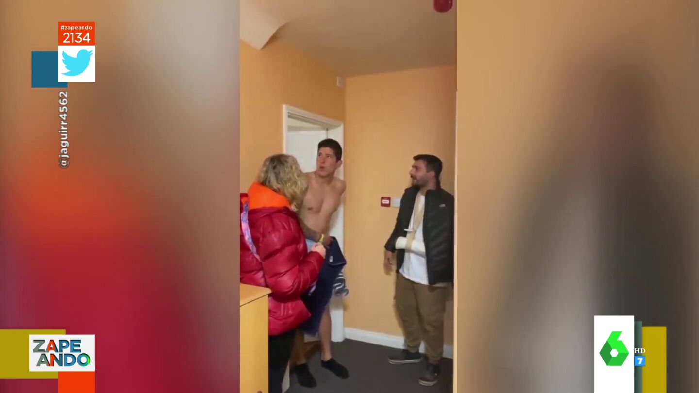 Juani es un chaval de origen argentino que lleva tiempo viviendo en Irlanda y al que su madre ha decidido visitar por sorpresa. Sin embargo, la reacción del joven se ha vuelto viral en redes sociales ya que, al ver a su progenitora, el chico se "cae redondo", describe Quique Peinado: "No sabemos si es de emoción o porque tiene la cama sin hacer y sabe que le va a caer de su madre".