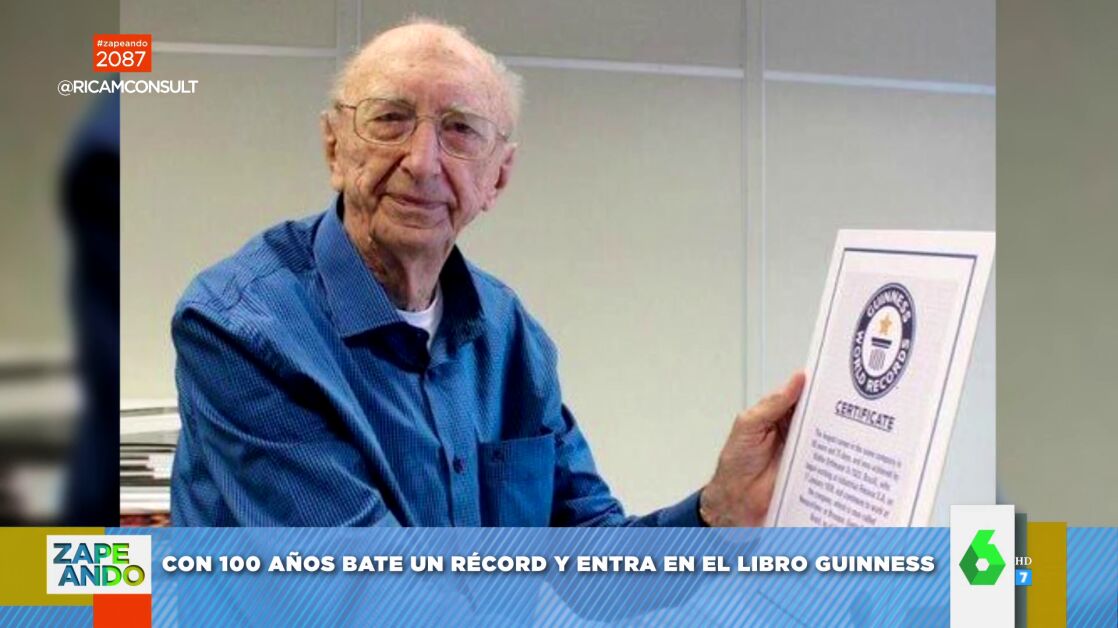 Walter, un hombre de 100 años, ha entrado en el Libro Guiness de los Récords por llevar 84 años trabajando en la misma empresa. "Es un caso extraordinario", comenta Dani Mateo, quien asegura que este brasileño ha visto "morir jefes": "Quizá sea el único caso en el mundo en el que han echado antes a los jefes que a él", bromea con sus compañeros de mesa, y opina que es un récord prácticamente "imbatible".