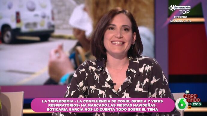 La farmacéutica visita Zapeando para hablar sobre un cóctel de varios virus respiratorios que ha importunado las navidades de mucha gente: la tripledemia, que se debe a la confluencia del COVID, la gripe y los resfriados estacionales.