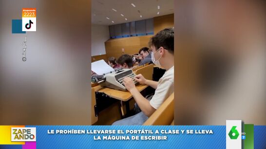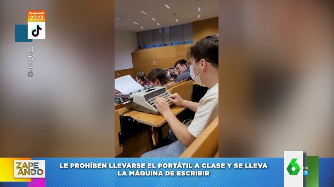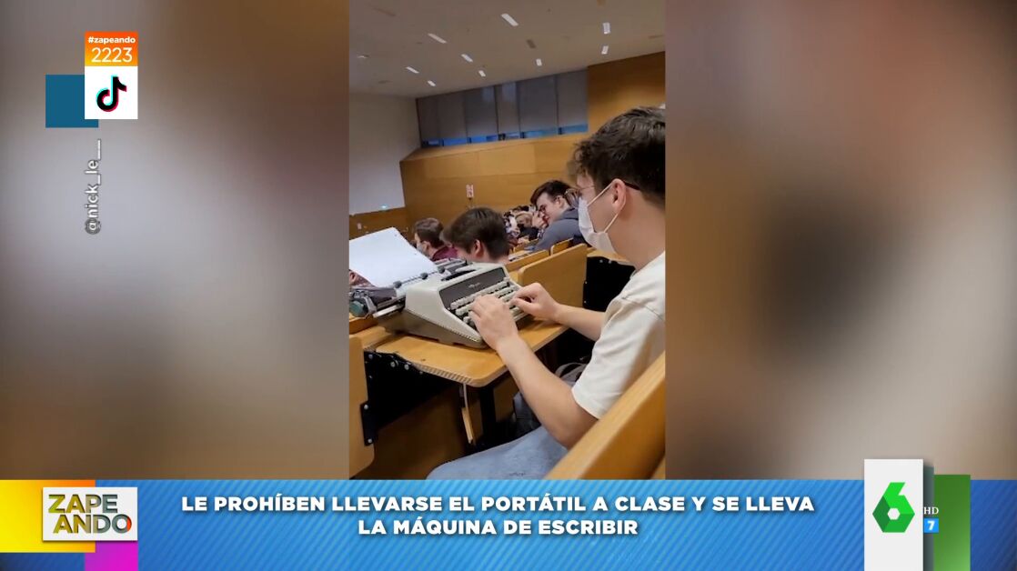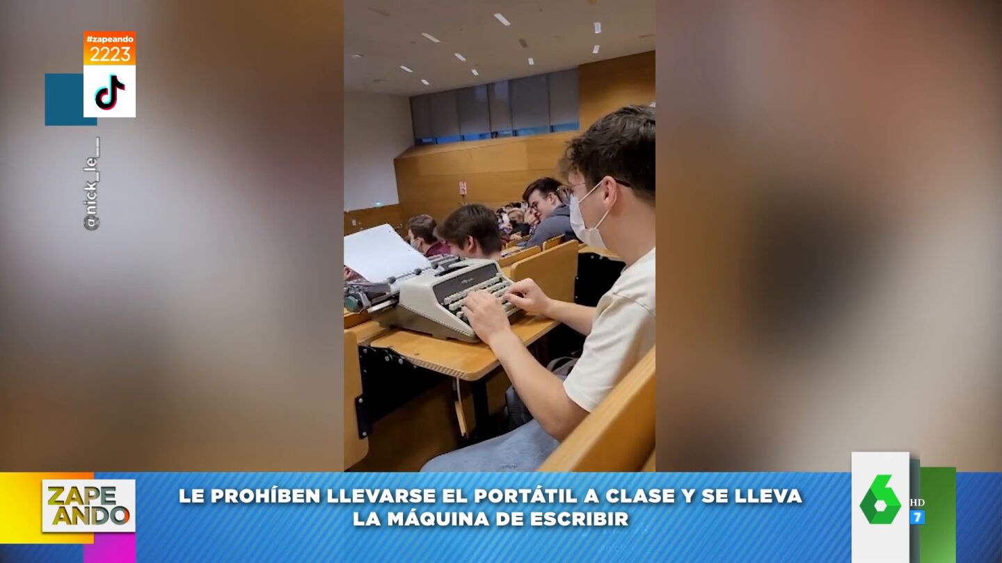 Un profesor de universidad de Alemania ha prohibido a sus alumnos llevar los portátiles a clase, "pero no dijo nada de las máquinas de escribir", comenta Valeria Ros. Y, es que, ante esta norma, un estudiante decidió actuar y se llevó una máquina de escribir a clase, con la que no solo sorprendió a su profesor, sino también a sus alumnos, que no pudieron evitar reír al ver el aparato con el que cogía apuntes.