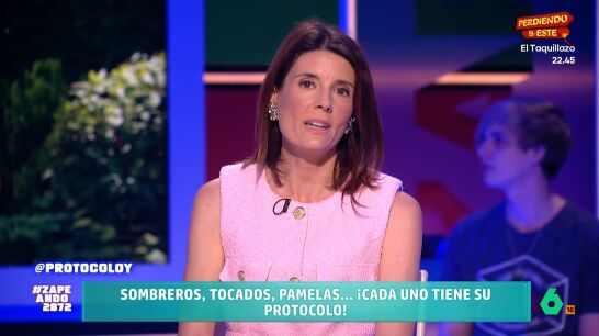 "Es la servilleta y nos sirve para limpiarnos", comenta María José, "cuanto menos la manipulemos, mejor". Isabel Forner quiere saber cuál es el protocolo con respecto a un complemento habitual en estos eventos: los sombreros y los tocados. La experta indica que el protocolo es diferente en hombres y mujeres.