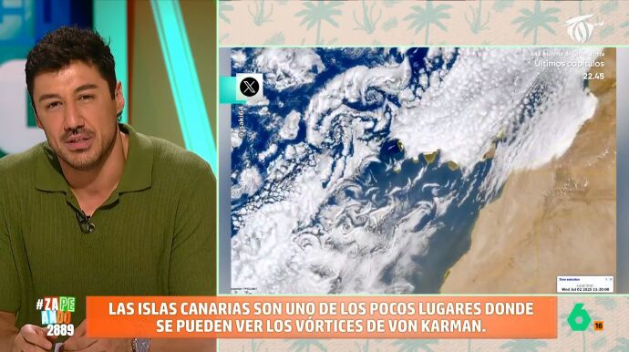 Francisco Cacho analiza hoy en Zapeando un espectacular fenómeno meteorológico que se da en muy pocos lugares del planeta, pero uno de ellos es las islas Canarias: los vórtices de Von Karman.