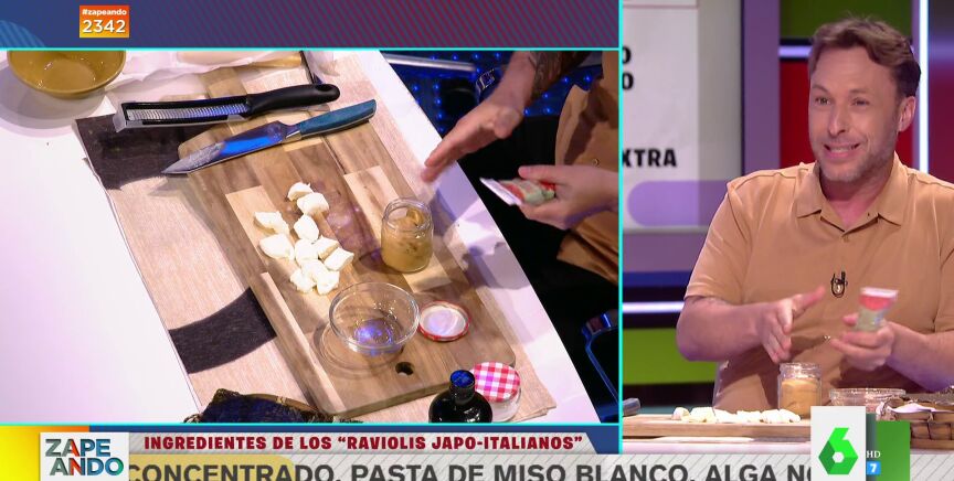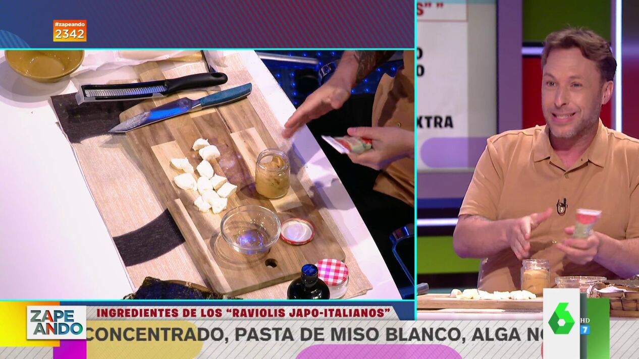 Gipsy Chef se atreve con una nueva receta en Zapeando. En esta ocasión, mezcla dos culturas tan diferentes como la japonesa y la italiana para hacer unos raviolis en tan solo diez minutos: "Es de lo más rico que he hecho aquí".