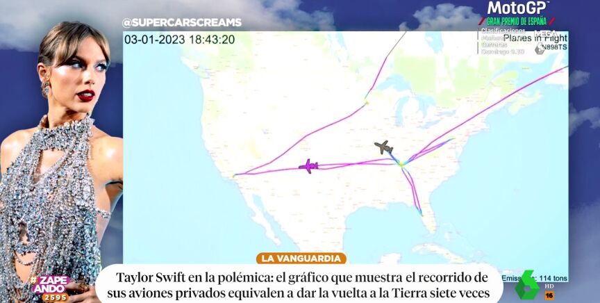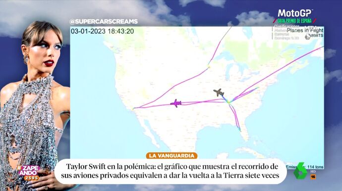 "Las distancia que habría recorrido sería de 126.000 kilómetros", cuenta Dani Mateo. "La cantante está recibiendo bastantes críticas por el uso de vuelos privados en trayectos cortos que podrían hacerse en transportes menos contaminantes", añade el presentador.