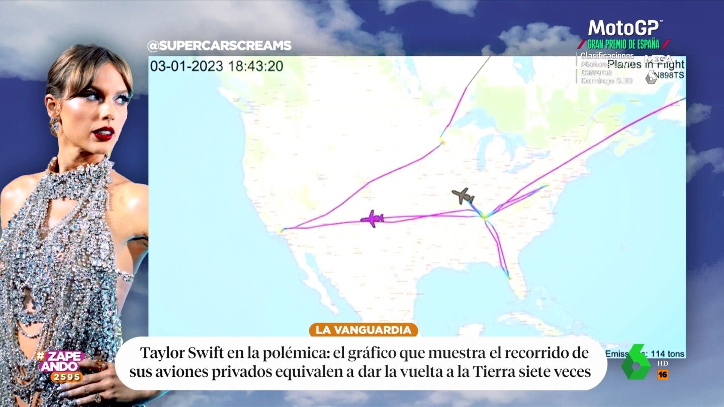 La cantante Taylor Swift se ha visto envuelta en una nueva polémica por culpa de sus viajes en avión privado. Según un gráfico elaborado en base a todos sus viajes en el año 2023, el recorrido que habría hecho equivaldría a dar la vuelta al mundo siete veces.