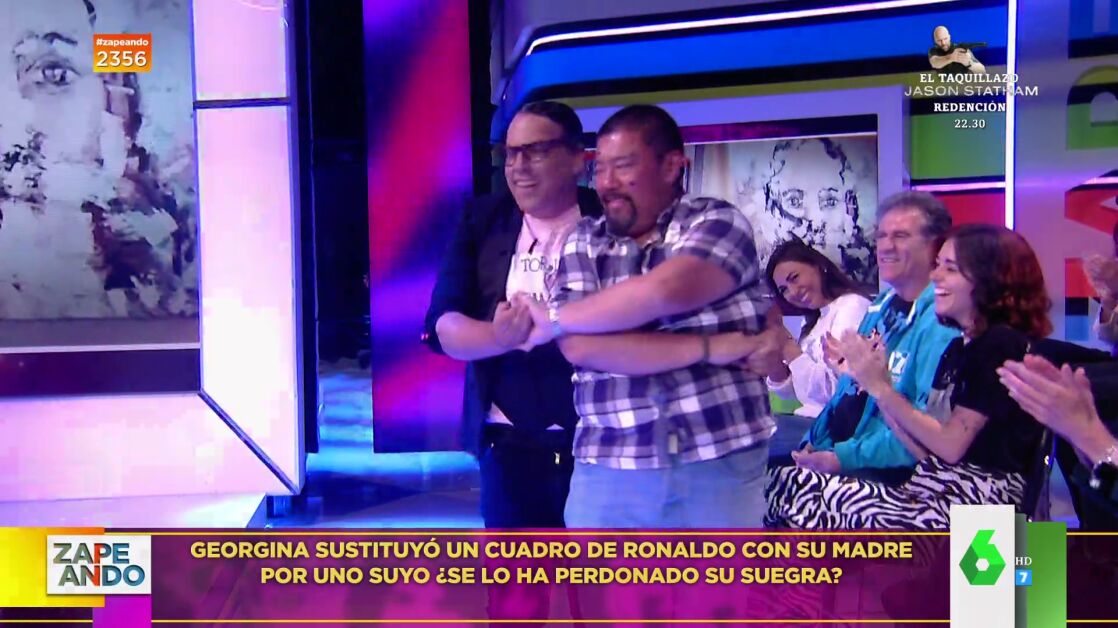 Pero una vez que se sienta a la mesa, Torito se 'olvida' del hombre del público y cuenta su anécdota de cuando coincidió con Cristiano Ronaldo encalzoncillos en un jacuzzi."Vamos a dejar el tema de Cristiano porque está afectando a Juan Carlos", comenta Dani Mateo. "Juan Carlos eres arte", piropea el nuevo colaborador, que le pregunta en directo: "¿Estás casado? ¿Has probado varón?".