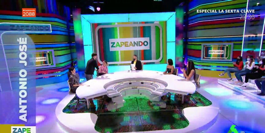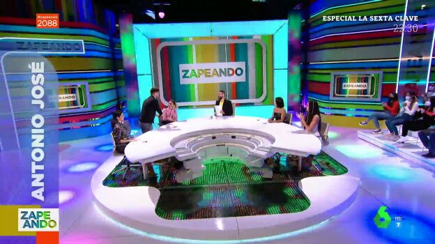 "Para suplir nuestra falta de talento, éxito y belleza nos visita un artista que de esto va sobrado", destaca Dani Mateo al presenta en directo en el plató de Zapeando a Antonio José. Lo que el presentador no se espera es la reacción del cantante al ver a Valeria Ros. "¿Ya os conocíais?", pregunta sorprendido Dani Mateo, al cantante que explica que el día anterior se habían visto.