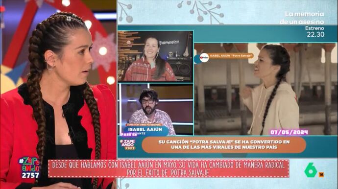 Durante su visita a Zapeando para promocionar su nuevo tema 'Puñales', Isabel Aaiún también habló sobre la canción que la llevó a la fama: 'Potra Salvaje', que en estos momentos acumula 32 millones de visualizaciones en YouTube y 27 millones en Spotify.