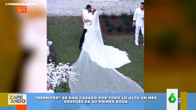 Después de una primera boda muy familiar hace un mes, Jennifer López y Ben Affleck se han vuelto a casar y, esta vez, por todo lo alto. En este vídeo de Zapeando puedes ver las primeras imágenes de la celebración.