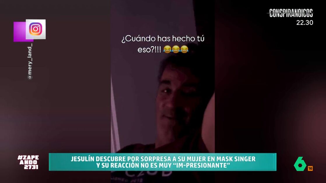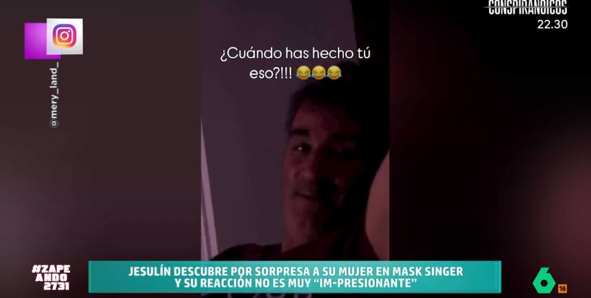 La celebrity ha mostrado en sus redes sociales un vídeo en el que se puede ver a Jesulín mientras ve como desenmascaran a su mujer. "¿Cuándo has hecho tú eso?", le dice a María José. Ella no puede evitar reír y le contestas: "Me voy de casa y ni te enteras".