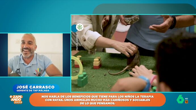 Aunque muchas personas no tienen una buena opinión de ellas, las ratas son unas mascotas que están adquiriendo cierta popularidad. Además, tienen otras habilidades bastante llamativas. Como cuenta el veterinario Víctor Algra, en un colegio de Málaga se utiliza a este animal en terapias con niños. Para conocer un poco más sobre las mismas, Zapeando conecta con el promotor de esta iniciativa, José Carrasco, gerente de TAP Málaga.