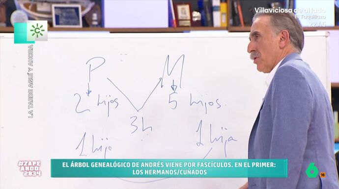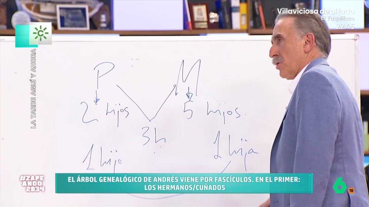 Juan y Medio vivió uno de los momentos más desconcertantes de su programa 'La Tarde, aquí y ahora' al intentar descifrar el árbol genealógico de un invitado. La historia familiar era tan enrevesada que ni una pizarra fue suficiente.