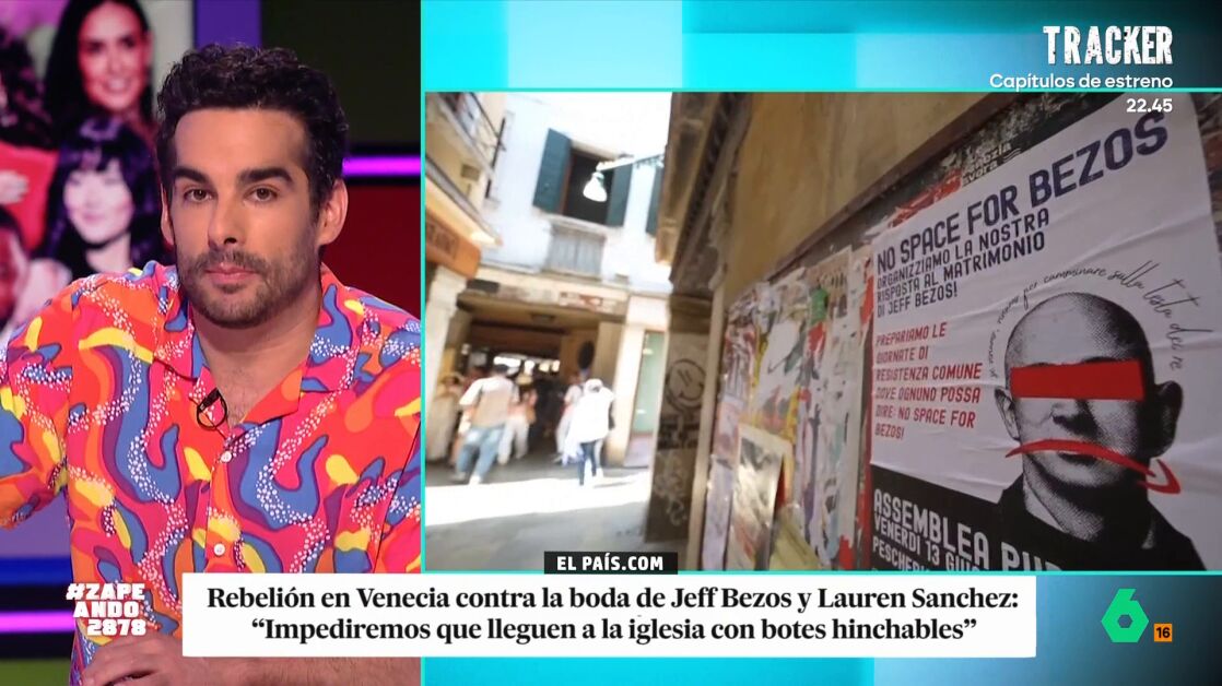 Sanguino señala que la futura mujer de Bezos, el tercer hombre más rico del mundo, se va a poner hasta 27 vestidos en estos tres días, lo que alucina a Dani Mateo: "¿Pero qué es, la ayudante de un mago?", comenta.