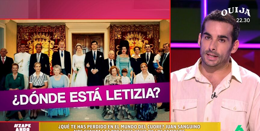En el páginas interiores de la revista se puede ver una fotografía de grupo pero Juan ha destacado una ausencia notable en la misma: la reina Letizia. La monarca no habría acudido al enlace algo que ha provocado que se generen numerosos rumores en torno a este hecho. "¿Esa foto es real?", pregunta Cristina Pedroche, "parece que están puestos por Photoshop". "Parece una de las salas del Museo de Cera", añade Dani Mateo.