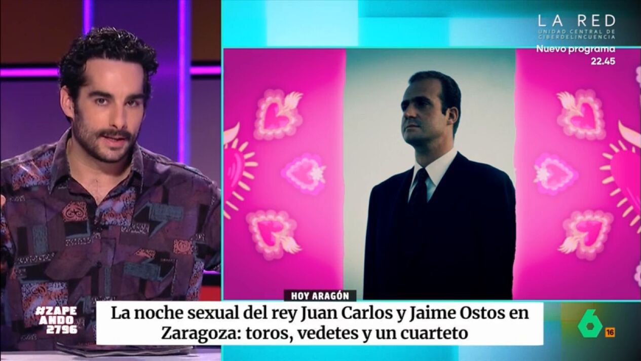 Juan Sanguino visita una tarde más el plató de Zapeando para repasar las portadas de las revistas más famosas del país. Sin embargo, en esta ocasión, el colaborador no solo analiza la prensa del corazón, sino que también relata una noche de fiesta protagonizada por el rey emérito Juan Carlos I y el torero Jaime Ostos en Zaragoza.