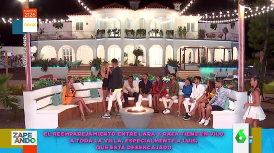 Dani Mateo destaca las novedades de Love Island y es que en el último programa vimos "lo más grande" y no, "no es que nadie hiciera nudismo". El presentador de Zapeando se refiere a la relación de Lara y Rafa, que peligra después de que el isleño tuviera algo con Mireia aunque él lo niegue. "Yo con Mireia no he tonteado", ha insistido el joven a sus compañeros, que confiesan que no le creen. "He visto fichas policiales con menos cara de culpabilidad que Rafa", afirma Valeria Ros.