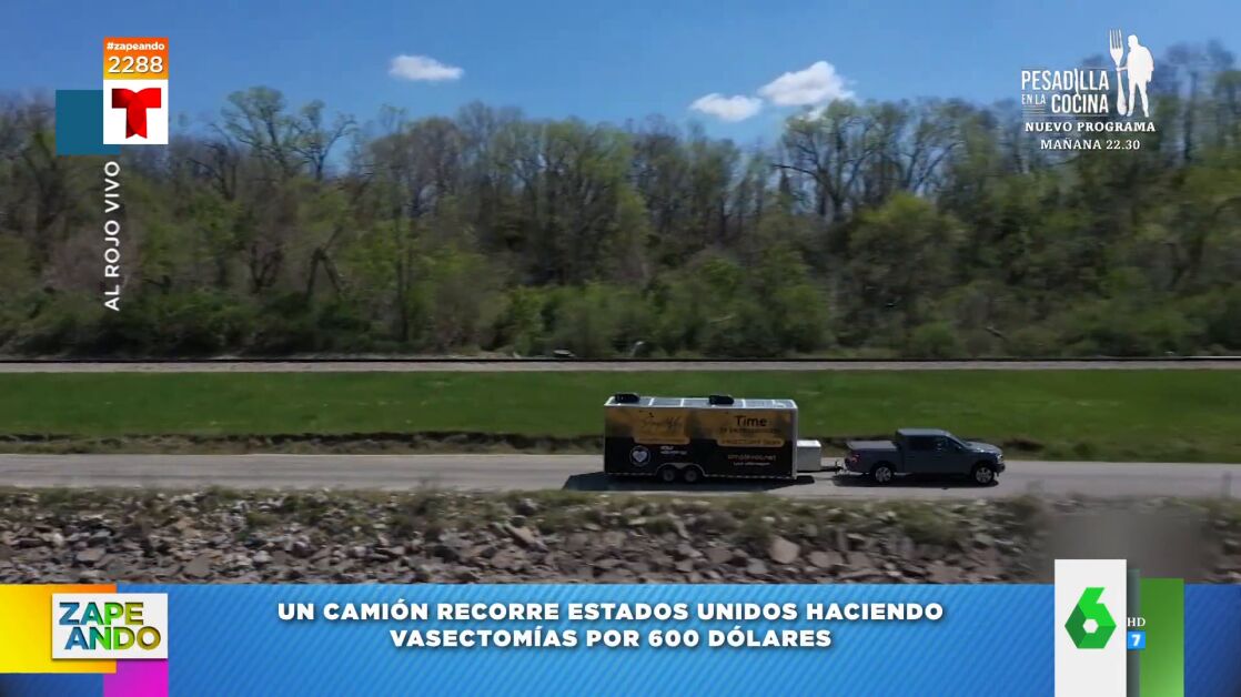 "Nosotros nos quejamos con razón de cómo está la sanidad en España", espeta Dani Mateo en Zapeando, "pero ojo a lo que hemos visto en Estados Unidos". Y, es que, un hombre se dedica a recorrer el país con su camión haciendo vasectomías por 600 dólares. "Las estoy dando, las estoy regalando. Ha llegado el vasectomero", ironiza el presentador del programa, provocando las risas en plató.
