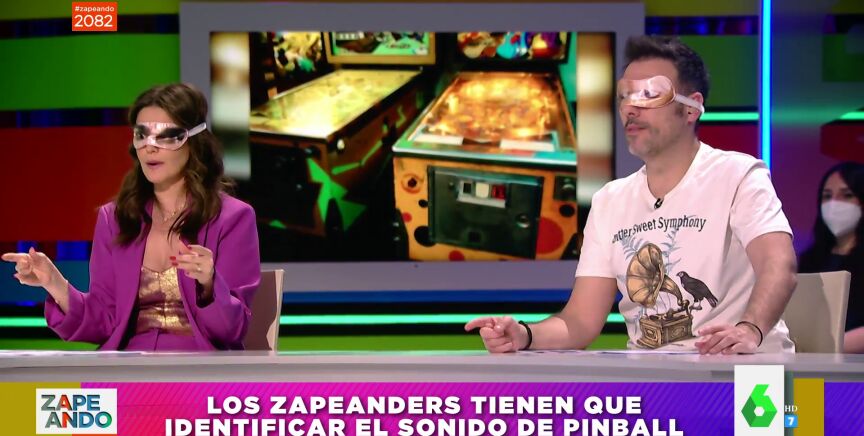 Entre unos antifaces con miradas de lo más peculiar y un juez, Dani Mateo, que no tiene muy claras las normas, Marta e Iñaki se han enfrentado al ruido de un pinball y un molinillo de café eléctrico, mientras Quique y María han intentado adivinar el de un reproductor VHS y un proyector de diapositivas. ¿Habrán acertado alguno? La respuesta en el vídeo sobre estas líneas.