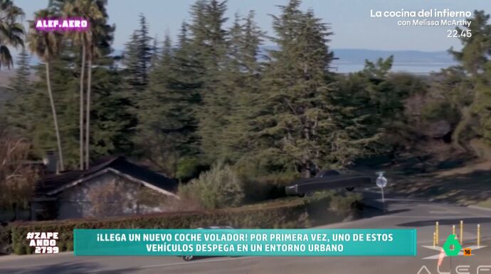 "Se ha probado con éxito pero mucha confianza no da", comenta Dani, "porque se mueve muy despacito". "No me pienso comprar un coche volador hasta que no vea al ingeniero que lo diseña dándose una vuelta con su familia", añade Maya. "A este coche no le llamaría volador, le llamaría flotador de momento...", afirma el presentador de Zapeando.
