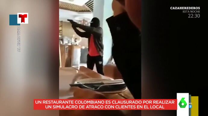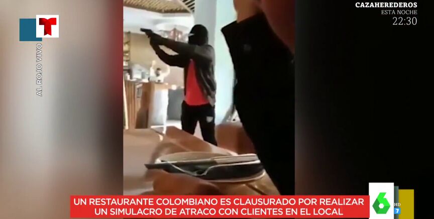 En todas las empresas se suelen hacer simulacros de incendios o de aviso de bomba. Pero en esta ocasión, Marta Torné muestra en Zapeando el vídeo del dueño de un restaurante colombiano que fue más allá. El hombre encargó un simulacro de robo en su local, teniendo clientes dentro. Lo hizo para entrenar a los camareros para que estuviesen preparados para un atraco real.