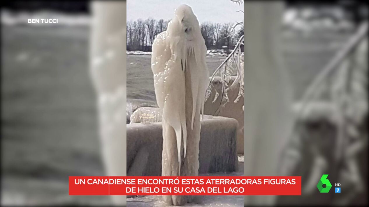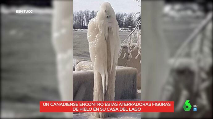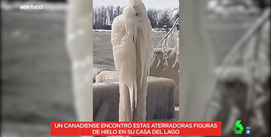 Cristina Pedroche muestra en Zapeando un vídeo que la ha dejado alucinada. Se trata de unas terroríficas figuras de hielo que se ha encontrado un hombre delante de su casa del lago en Canadá. La zapeadora no tiene duda de que le pasa a ella y no sale de casa. "Es como si la muerte hubiera ido a por ti", asegura Pedroche.