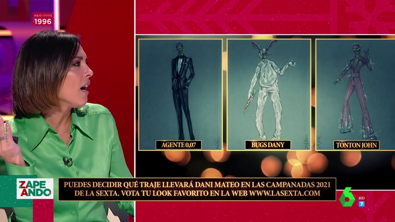 "No quiero influenciar, pero para las cosas que nos están pasando este año, lo adecuado es saludar al año nuevo vestido de conejo, porque es tan absurdo como la realidad", destaca Dani Mateo mientras que Valeria Ros le pregunta de qué va a ir su compañera: Cristina Pardo. "Cristina no tiene la culpa de lo tonto que soy", destaca Mateo. Pero, ¿qué look les gusta al resto de zapeadores? ¡Descúbrelo en el vídeo principal de Zapeando!