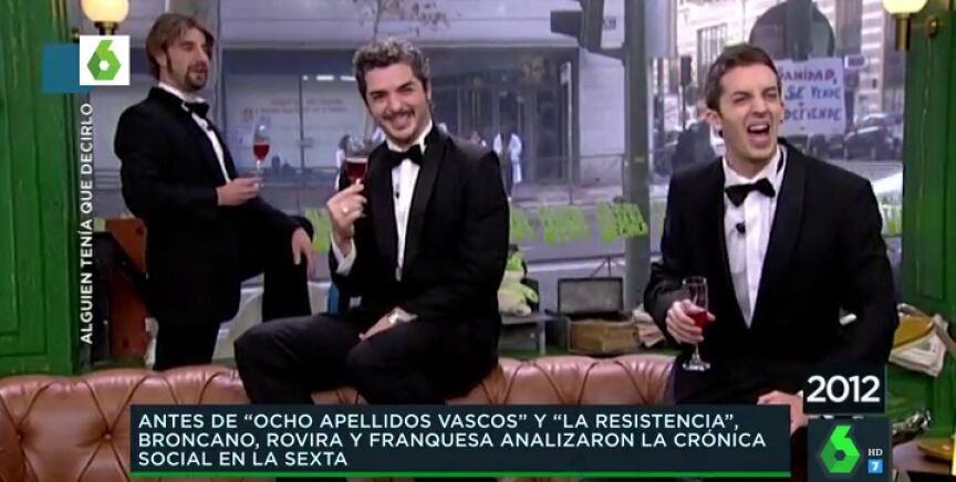 Y es que antes de 'Ocho apellidos vascos' y 'La Resistencia', Rovira y Broncano analizaron la crónica social en laSexta con este divertido programa de Franquesa. Puedes revivir uno de esos momentos en este vídeo de Zapeando.