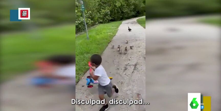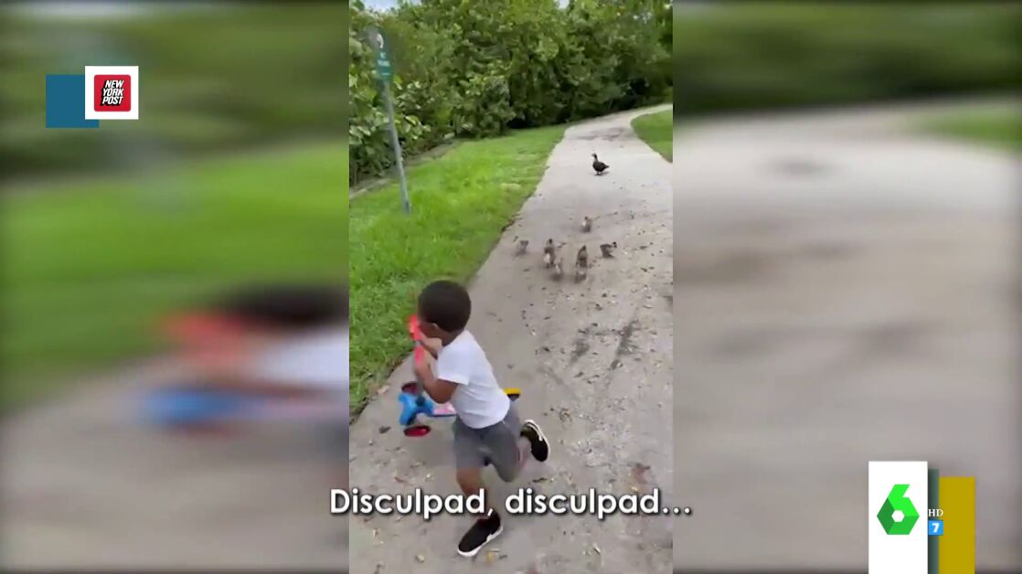El enternecedor vídeo de un niño pidiendo perdón a unos patos que le persiguen: "Disculpad, disculpad"