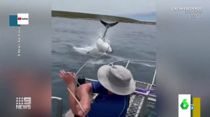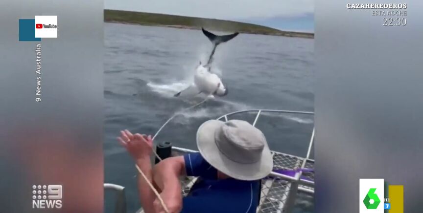 Lorena Castell enseña un vídeo en Zapeando que deja a los colaboradores del programa sin palabras. Es el tremendo salto que hace un tiburón blanco en Australia, justo delante de un barco lleno de turistas. Tras ver las imágenes, Dani Mateo comenta que "hay tiburones blancos en el Mediterráneo", algo que asusta a Lorena: "¿Dónde? Dímelo que no me baño".