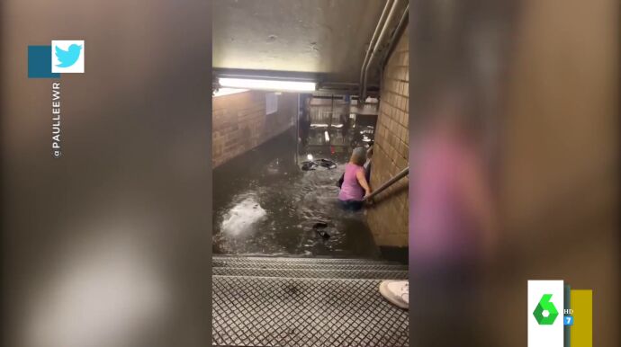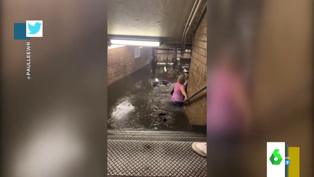 Cristina Pedroche enseña en el plató de Zapeando las consecuencias de las fuertes lluvias sufridas en Nueva York. Y es que las lluvias inundaron tanto la ciudad que se llenó hasta el Metro. "Las escaleras parecían una cascada, bajar por ahí cuenta como hacer barranquismo", destaca Cristina Pedroche, que muestra cómo para entrar en "algunas estaciones tenías casi que nadar".