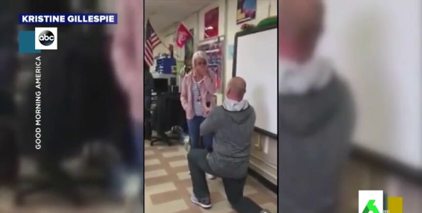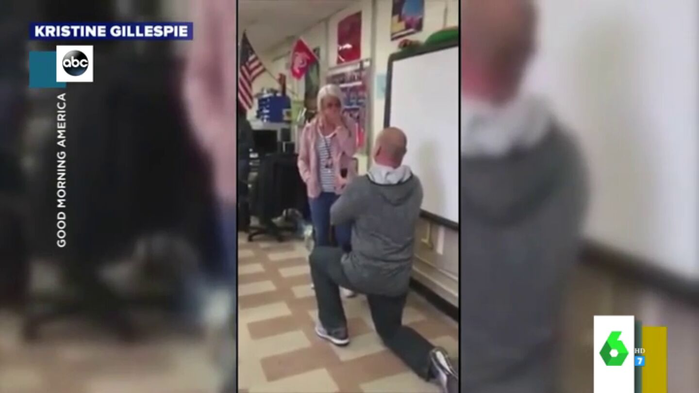 La romántica pedida de mano de un profesor ante los gritos de emoción de sus alumnos