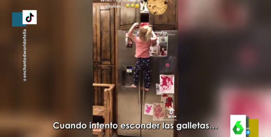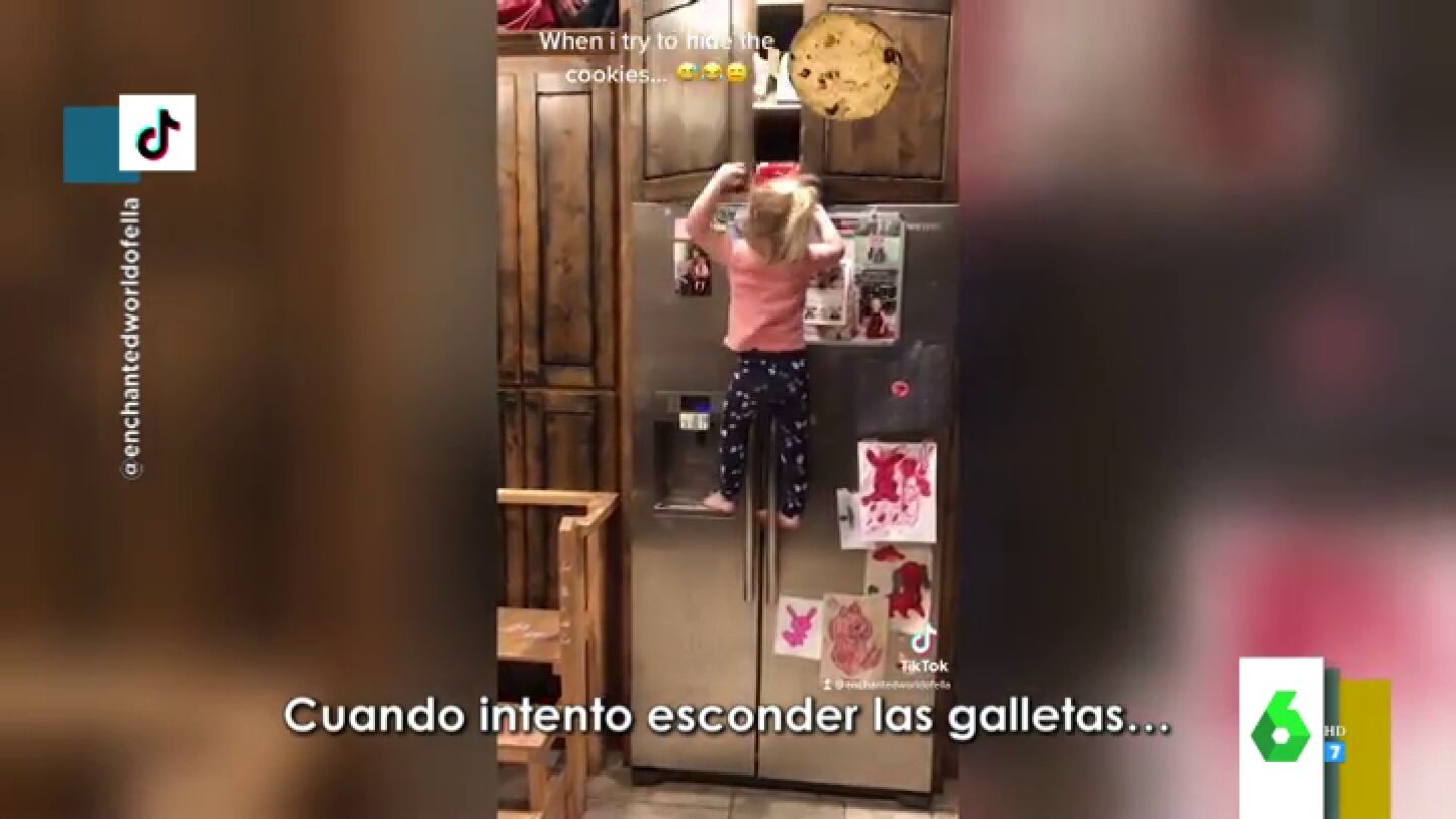 La sorprendente habilidad de una niña que trepa por la nevera para hacerse con una bolsa de galletas
