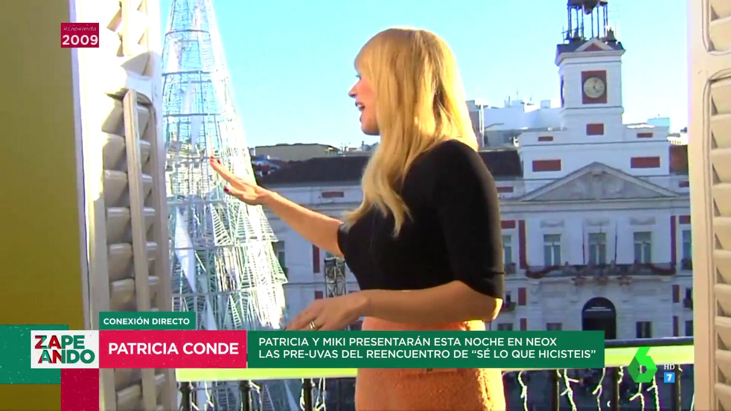 Patricia Conde, que presentará esta noche las preuvas con Miki Nadal en Neox, conecta con Zapeando en directo desde la Puerta del Sol. Puedes ver su divertida conexión en este vídeo.