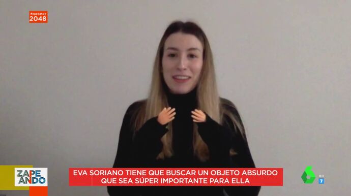 Zapeando ha propuesto a Eva Soriano un reto en pleno plató. La humorista ha tenido que enfrentarse a un juego en el que Dani Mateo le pedía que trajera cosas a cámara lo más rápido posible.