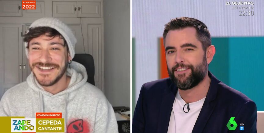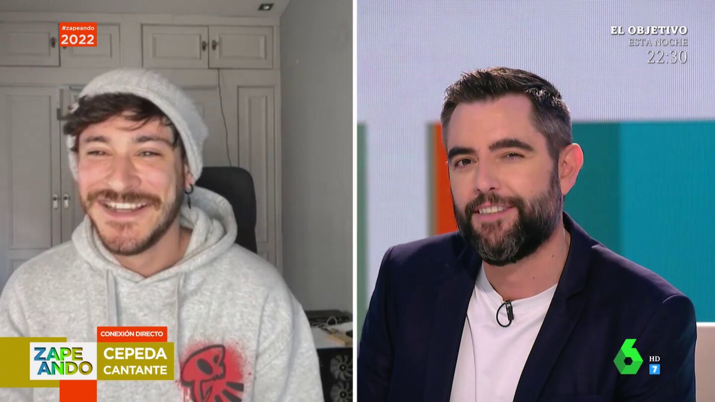 Dani Mateo conecta en directo desde Zapeando con un cantante amigo, Cepeda, a quien el presentador sorprende con una confesión nada más empezar la entrevista. Puedes ver su reacción en este vídeo.