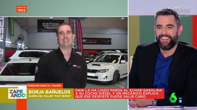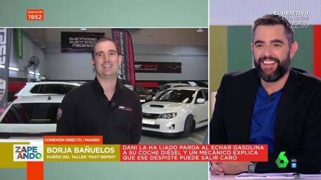 Cristina Pedroche conecta en directo con Susana, reportera de Zapeando, que se encuentra en un taller mecánico para conocer las consecuencias que puede tener el coche de Dani Mateo tras haber echado gasolina a un diésel. El presentador no da crédito de la sorpresa de sus compañeras y es como la propia Pedroche admite, esta entrevista no estaba puesta ni el guion. Del 1 al 10, ¿qué grado de torpeza ha tenido el presentador?