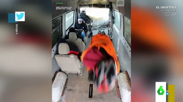 Lorena Castell muestra un impactante vídeo en Zapeando en el que un hombre atraviesa 'volando' un minibús en marcha "en plan Superman". En realidad, no se trata de un superhéroe, sino de un especialista ruso en retos extremos llamado Evgeny Chebotarev, de 30 años.