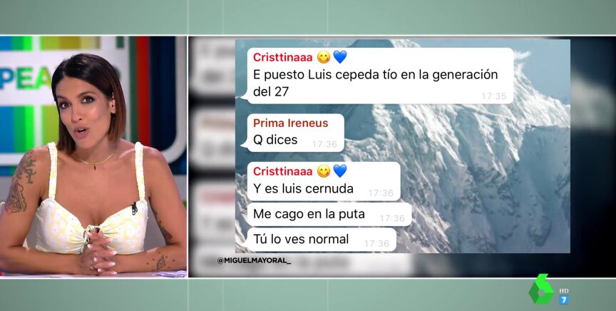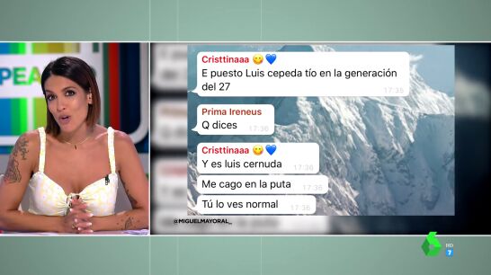 Los zapeadores no pueden evitar mostrar su pena por el joven al ver la conversación por Whatsapp con su amigo al que, incluso, llega a pedir la ubicación de la Universidad aunque ya ha empezado el examen. Pero este no es el único lapsus vivido por un estudiante en estos importantes exámenes. Lorena Castell también muestra el mal rato de un chica al darse cuenta de que se ha equivocado al nombrar a un integrante de la Generación del 27. Y es que la joven confundió a Luis Cernuda con Luis Cepeda, el cantante. En el vídeo principal de esta noticia puedes ver cómo se lo contaba enfadada a sus amigas.