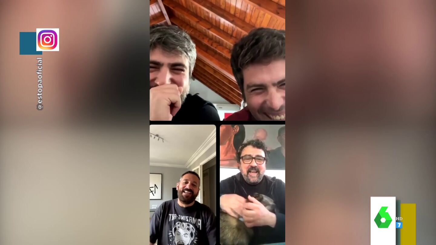 "Estoy intentando meter a paco", afirmaba Estopa, que también demostraba su poco dominio de la tecnología. "Estamos invocando a Paco", destacaban los hermanos Muñoz mientras que Paco Tous terminaba entrando en la videollamada pidiendo perdón: "Perdonad, me he liado con los botones".