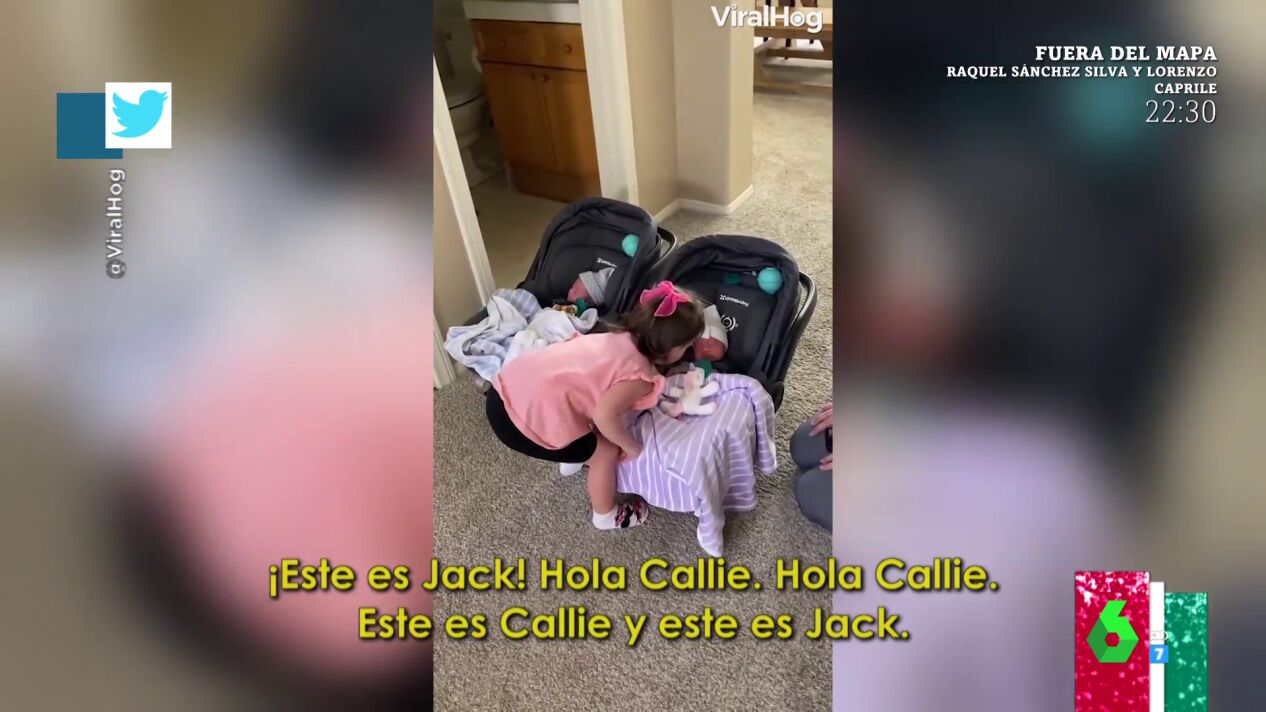 María Gómez muestra en este vídeo de Zapeando cómo saluda una niña a sus hermanos gemelos al conocerlos por primera vez. Una reacción que enamora a los zapeadores.