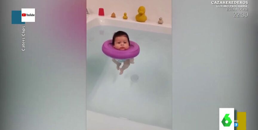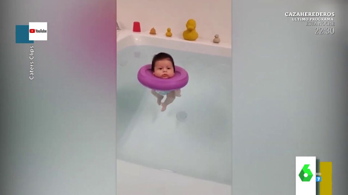 Quique Peinado muestra un vídeo viral de un bebé que está muy tranquilo en su flotador disfrutando un baño.