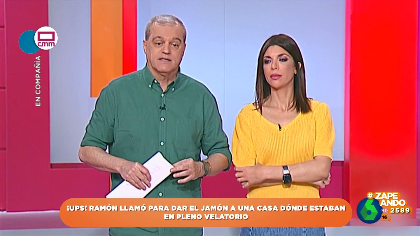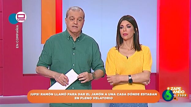 "¿Sabe para qué la estoy molestando?", le pregunta el presentador. La señora tiene claro que es para regalarle un jamón pero les informa de que, en ese momento, están de velatorio. Las caras de Ramón y Gloria son todo un poema y solo aciertan a darle su pésame.