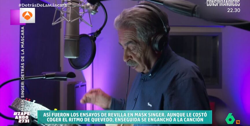 Para el político fue muy complicado no descubrir su identidad. El programa no dudó en mostrar todo el proceso que ha vivido Revilla para mantener su anonimato. Así, como se puede ver en el vídeo sobre estas líneas, el cántabro tiene que usar un pasamontañas para no mostrar su rostro durante el trayecto hasta el lugar de ensayo, algo que le incomodó mucho. "No puedo respirar", se queja Revilla. "Cuando le ponen eso parece un ninja que ha caído en el alcohol", afirma Dani Mateo tras ver las imágenes.