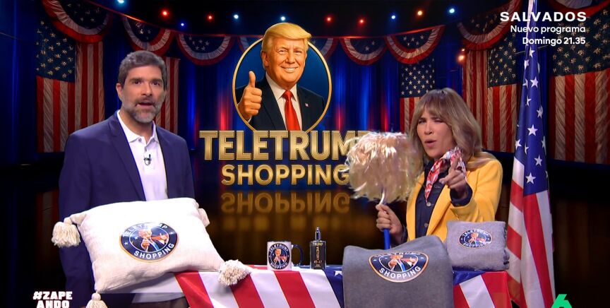 Pero por si todo esto fuera poco, Nacho García y María Gómez presentan un producto más de 'Teletrump Shopping': su fregona fabricada "100% con cabello de Donald Trump".