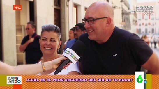 Susana Rodríguez, reportera de Zapeando, sale a la calle para entrevistar a los españoles y españolas sobre su boda. ¿Cómo vivieron ese día? ¿cuál es el peor recuerdo que tienen? "Pues nada, que no nos hicieron ni puto caso", recuerda una mujer y es que su marido explica que se casaron el día que el Atleti y el Valencia jugaron una final.