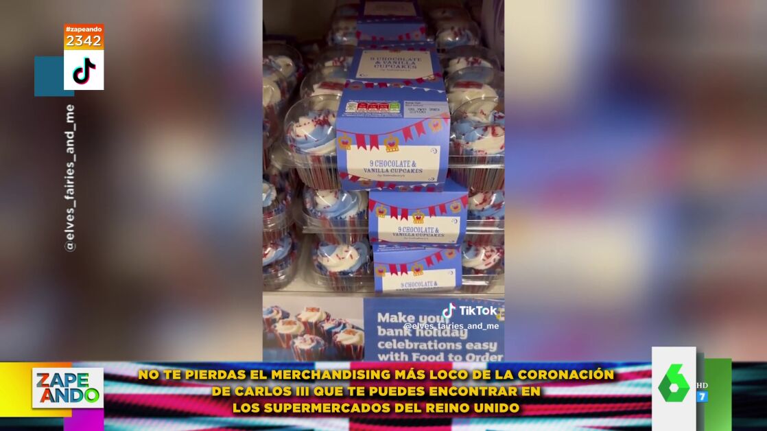 Se acerca un hecho histórico muy importante, la coronación de Carlos III, que se celebrará el próximo sábado 6 de mayo. "¿Qué sabemos?", pregunta Dani Mateo a Valeria Ros, que asegura que va a ser "precioso", aunque "no tanto como el merchandising sobre la coronación" que ya se ve en todos los supermercados británicos. "Acompañadme en este loco viaje por los súpers del Reino de Charles", pide la vasca a sus compañeros.